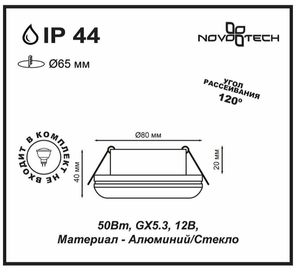 Встраиваемый светильник DAMLA - продукт известной компании Novotech (Венгрия). Имеет максимальную мощность 50 Вт, освещает площадь до 4 кв. м. Отлично подойдет для таких мест, как ванная. Впишется в интерьеры следующих стилей: техно, минимализм.