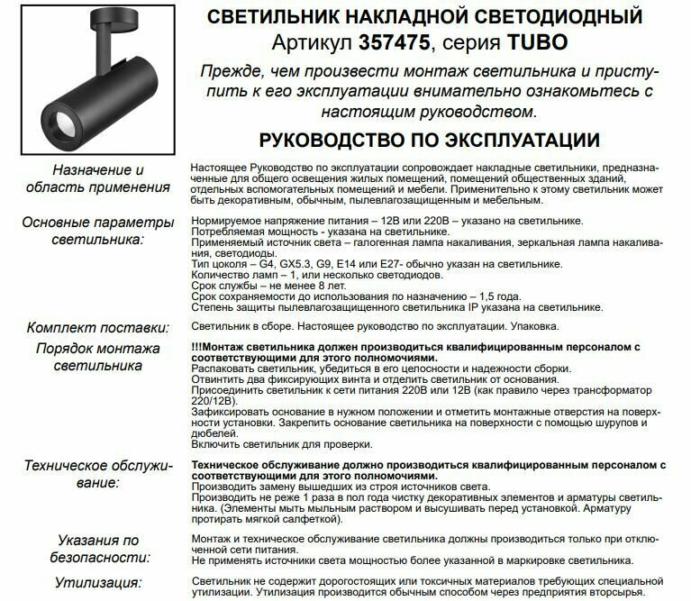| Цвет плафона / абажура | черный |