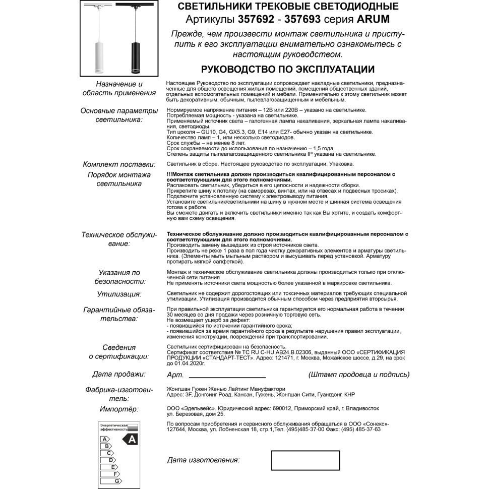 Трековый светодиодный светильник ARUM - продукт известной компании Novotech (Венгрия). Имеет максимальную мощность 12 Вт, освещает площадь до 2 кв. м. Отлично подойдет для таких мест, как гостиная, спальня, над обеденным столом, офис, над кухонным островом. Впишется в интерьеры следующих стилей: модерн.