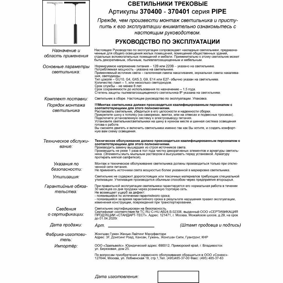 Трековый светильник PIPE - продукт известной компании Novotech (Венгрия). Имеет максимальную мощность 50 Вт, освещает площадь до 4 кв. м. Отлично подойдет для таких мест, как гостиная, кафе, холл, офис, прихожая и коридор. Впишется в интерьеры следующих стилей: модерн.