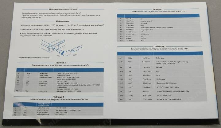 | Особенности | Штекер 1 - диаметр:4.8/1.7 мм Штекер 2 - диаметр:5.5/2.5 мм Штекер 3 - диаметр |