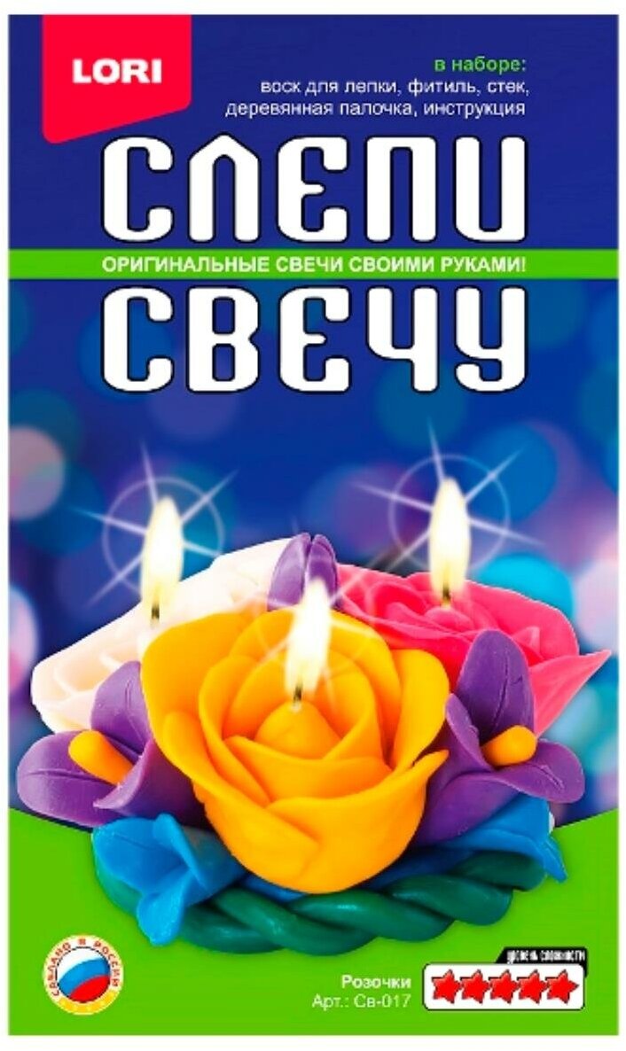 Розочки от компании Lori - это замечательный набор для творчества, который входит в серию товаров Слепи свечу . Перед началом процесса следует прочитать инструкцию, которая входит в набор. Процесс создания свечей до нельзя простой, воск необходимо размять, после чего можно начать придавать ему форму, не забыв при этом вставить фитиль во время лепки.