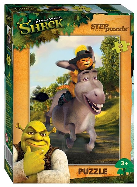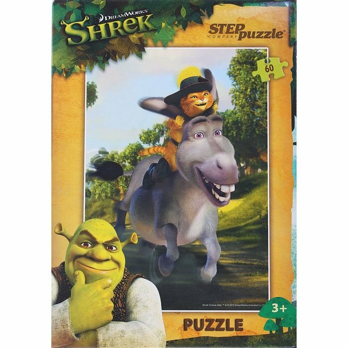 Пазл Кот в сапогах, состоящий из 60 деталей, понравится всем любителям мультипликационного фильма о Шреке. На картинке изображены хитрый кот с веселым и болтливым осликом, скачущие навстречу приключениям. Пазл очень красочный, а рисунок понятный, собрать все элементы воедино не составит особого труда для маленького ребенка. Такая игра обязательно увлечет малыша, разовьет его внимательность, усидчивость и образное мышление.