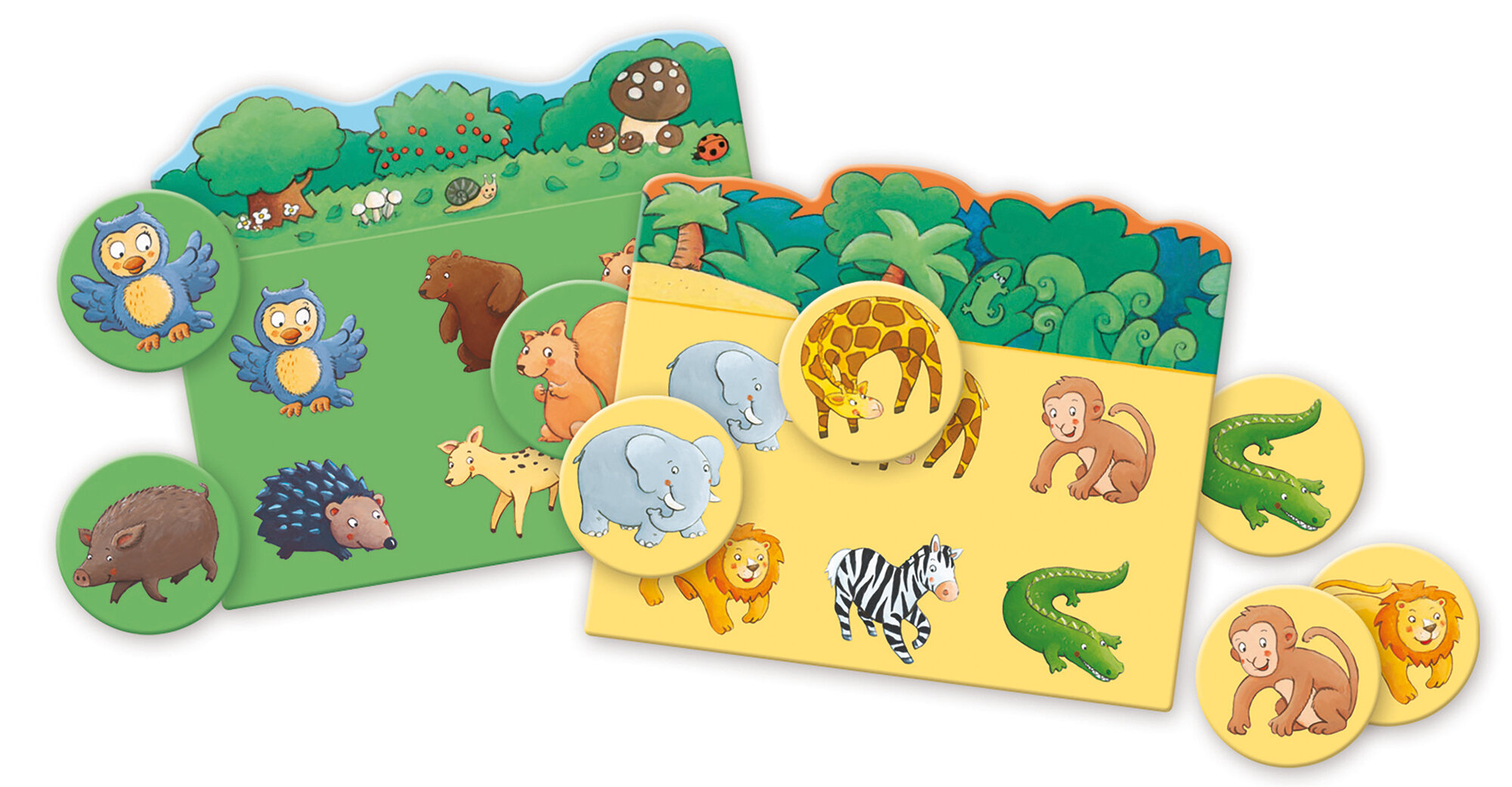 - В набор входит: 5 игровых полей и 30 фишек с изображениями различных животных
