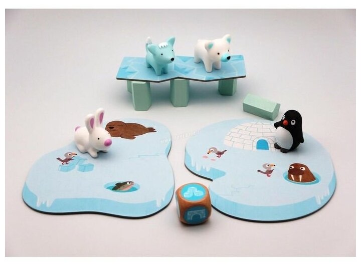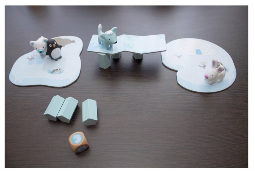 перевести по мостику с льдины на остров с домиком. Есть не понятный момент ( если выпадает домик, а на мосту никого нет. Это пропуск хода или можно с льдины перевести на мост. ). Ребенку 3-х лет играть понравилось . Рекомендую.Достоинства: