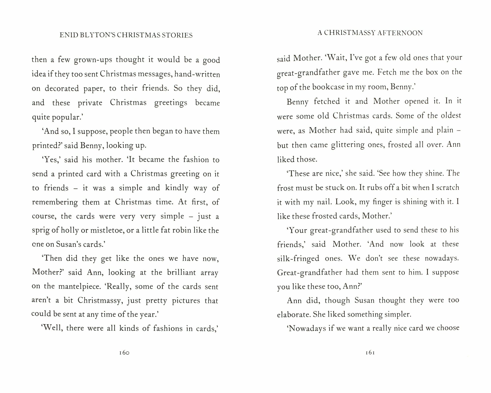 Enid Blyton's timeless collection of Christmas stories - an ideal gift for anyone who loved the stories during their own childhood to pass on to the next generation of readers. Here is a wonderful selection to read and share. From Santa Claus and his helpers to a family putting up their tree, the characters in these stories embrace the Christmas spirit. There is mystery and magic, laughter and mischief, the joy of shared times and plenty of delicious food - many of the ingredients which have been delighting Enid Blyton's readers for more than seventy years. The stories previously appeared in magazines and anthologies from the 40s and 60s are.
