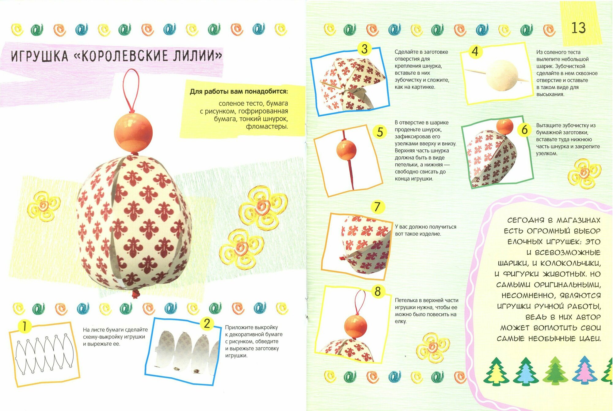 С помощью этой книги вы сможете украсить свою елку эксклюзивными самодельными игрушками. Для них можно использовать самые разнообразные материалы - цветную бумагу, соленое тесто, фетр, тесьму, бусинки, фольгу и т. п. А схемы и подробные описания этапов работы, предлагающиеся к образцам, сделают творческий процесс легким, приятным и понятным даже ребенку.