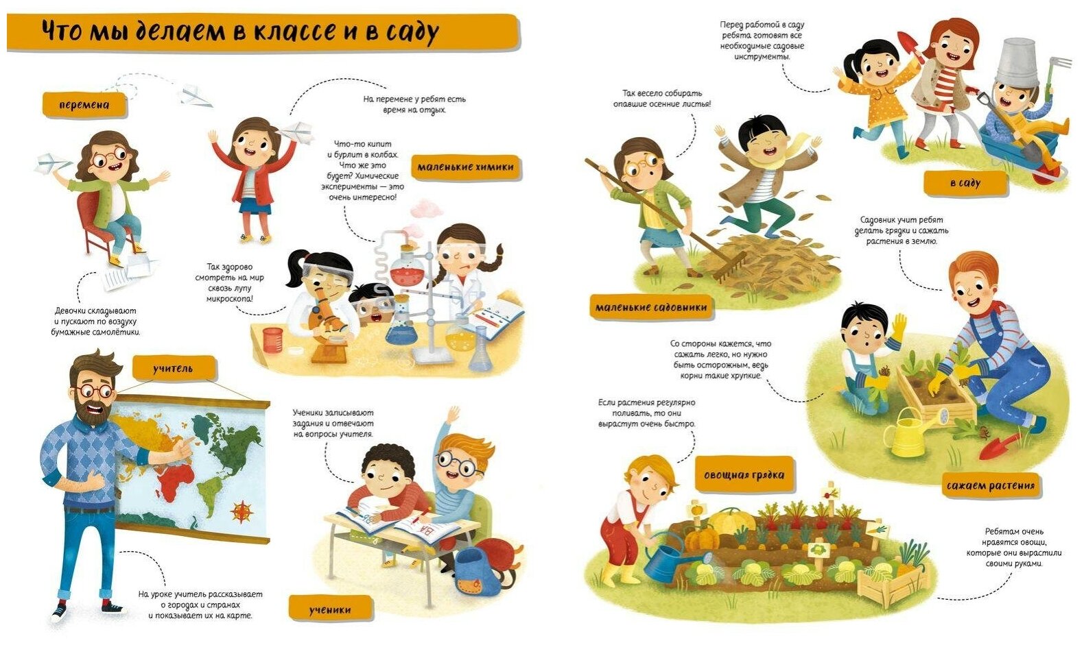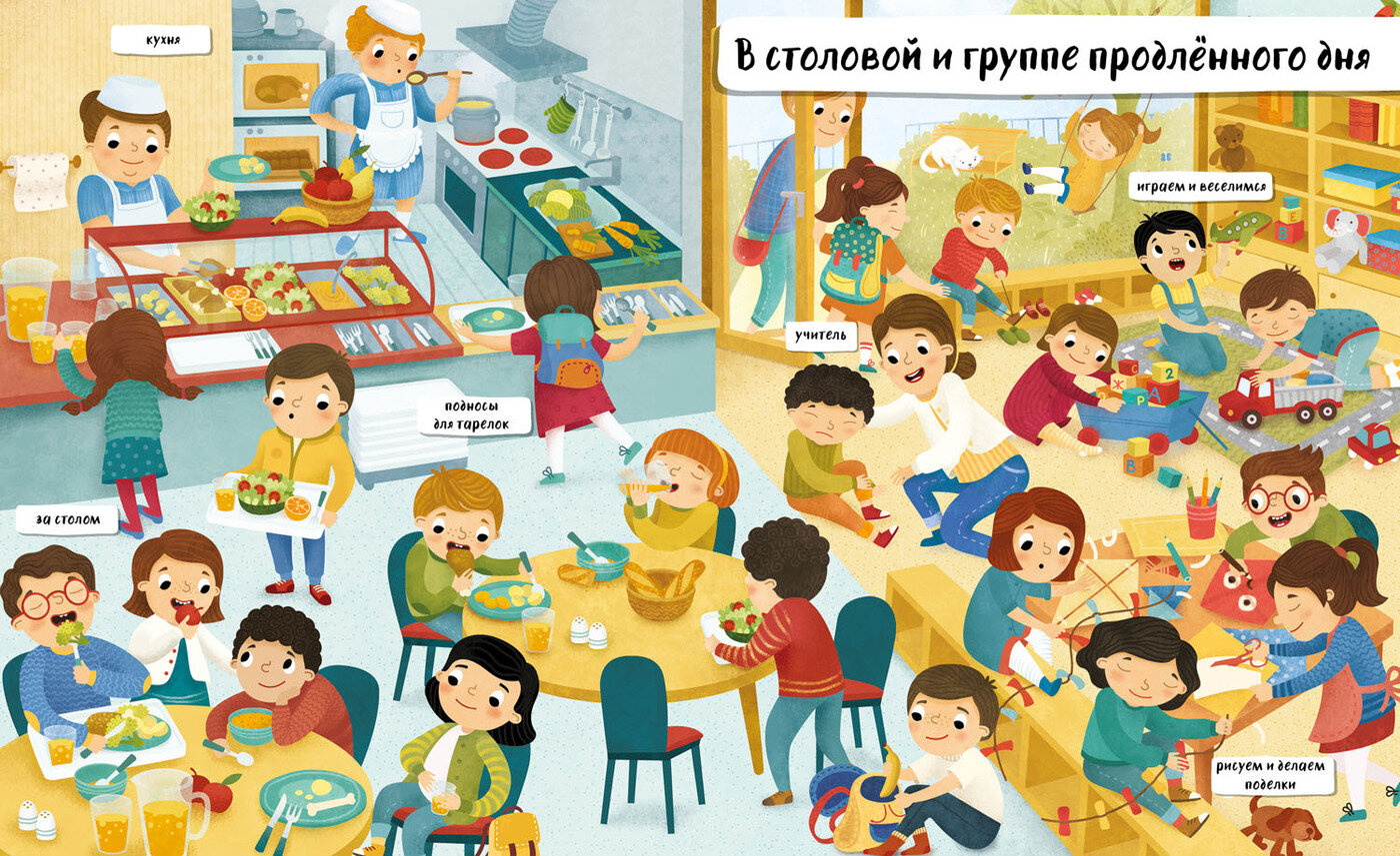 С помощью книги можно показать ребенку, чем занимаются школьники на уроках и переменах, как правильно себя вести.