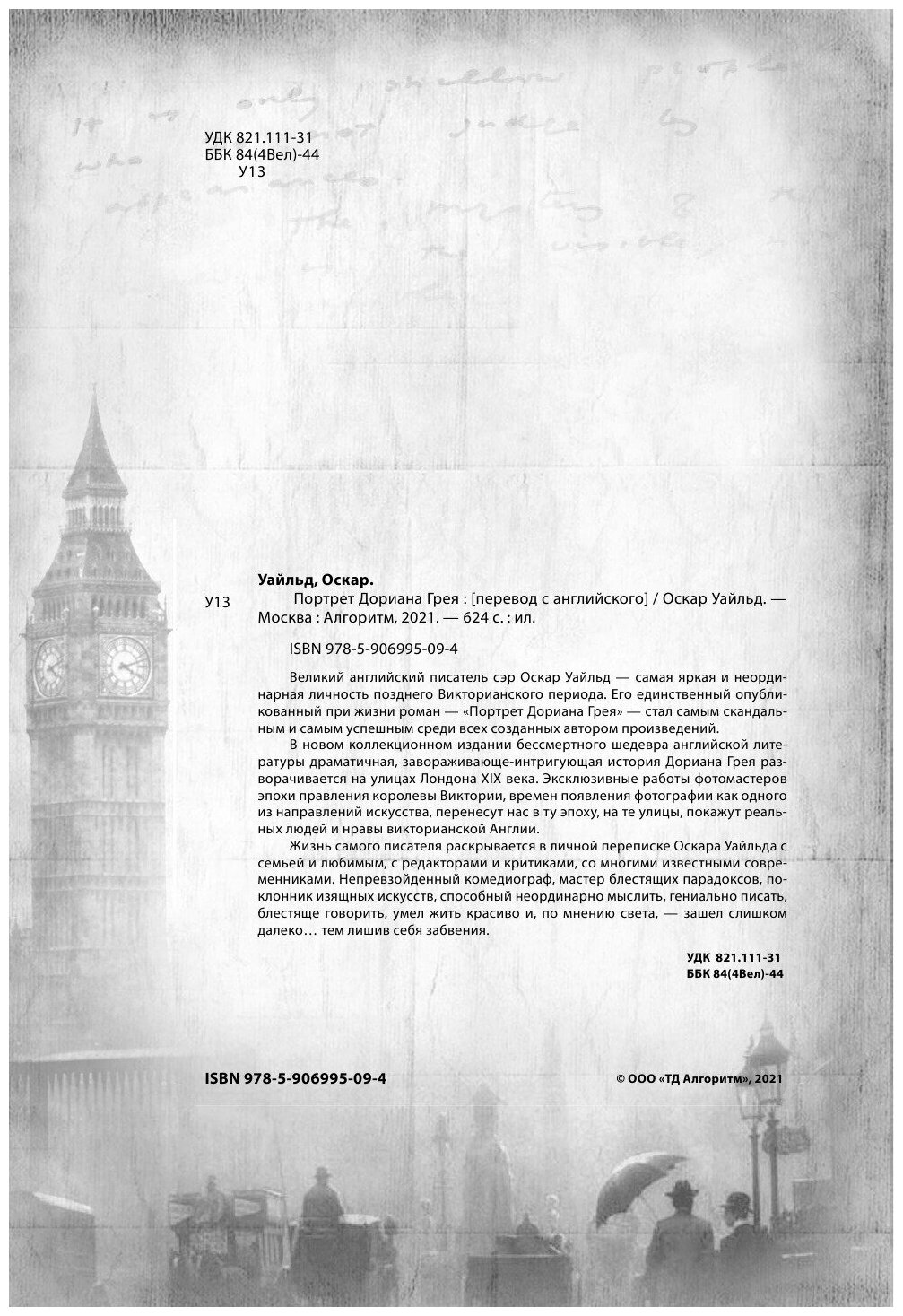 В новом коллекционном издании бессмертного шедевра английской литературы драматичная, завораживающе-интригующая история Дориана Грея разворачивается на улицах Лондона XIX века. Эксклюзивные работы фотомастеров эпохи правления королевы Виктории, времен появления фотографии как одного из направлений искусства, перенесут нас в ту эпоху, на те улицы, покажут реальных людей и нравы викторианской Англии.
