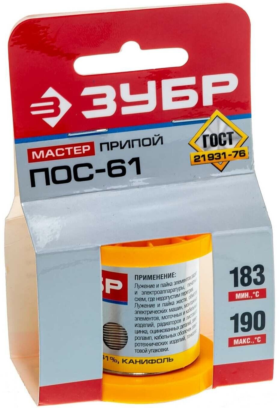 Припой ПОС 61 Зубр применяется для лужения и пайки элементов электро- и радиоаппаратуры, печатных схем, точных приборов с герметичными швами, где недопустим перегрев, пайка жести, обмоток электрических машин, монтажных элементов, моточных и кабельных изделий, радиаторов и листового цинка, оцинкованных деталей холодильных агрегатов, теплообменников, электроламп, кабельных оболочек, тонколистовой упаковки. Припой с 61% содержанием олова и 39% содержанием свинца оптимально подходит в случаях, когда элементы для спайки нельзя перегревать. Продукция предназначена для профессионального использования. Припой имеет высший уровень качества и прошёл спектральную и химическую проверку. Соответствует ГОСТ 21931.