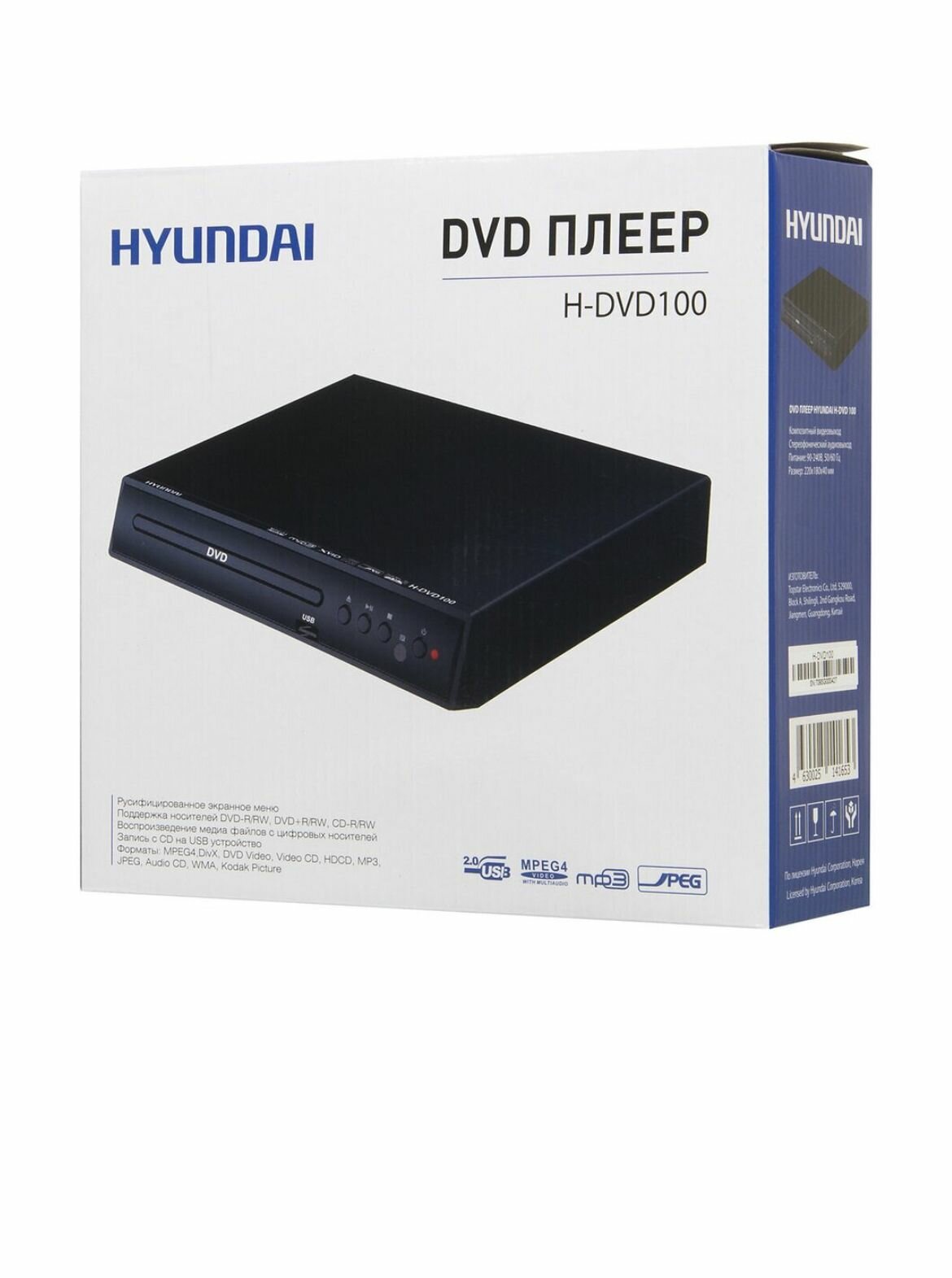 Плеер DVD Hyundai черный ПДУ H-DVD100 (размер: 38x195x225мм)