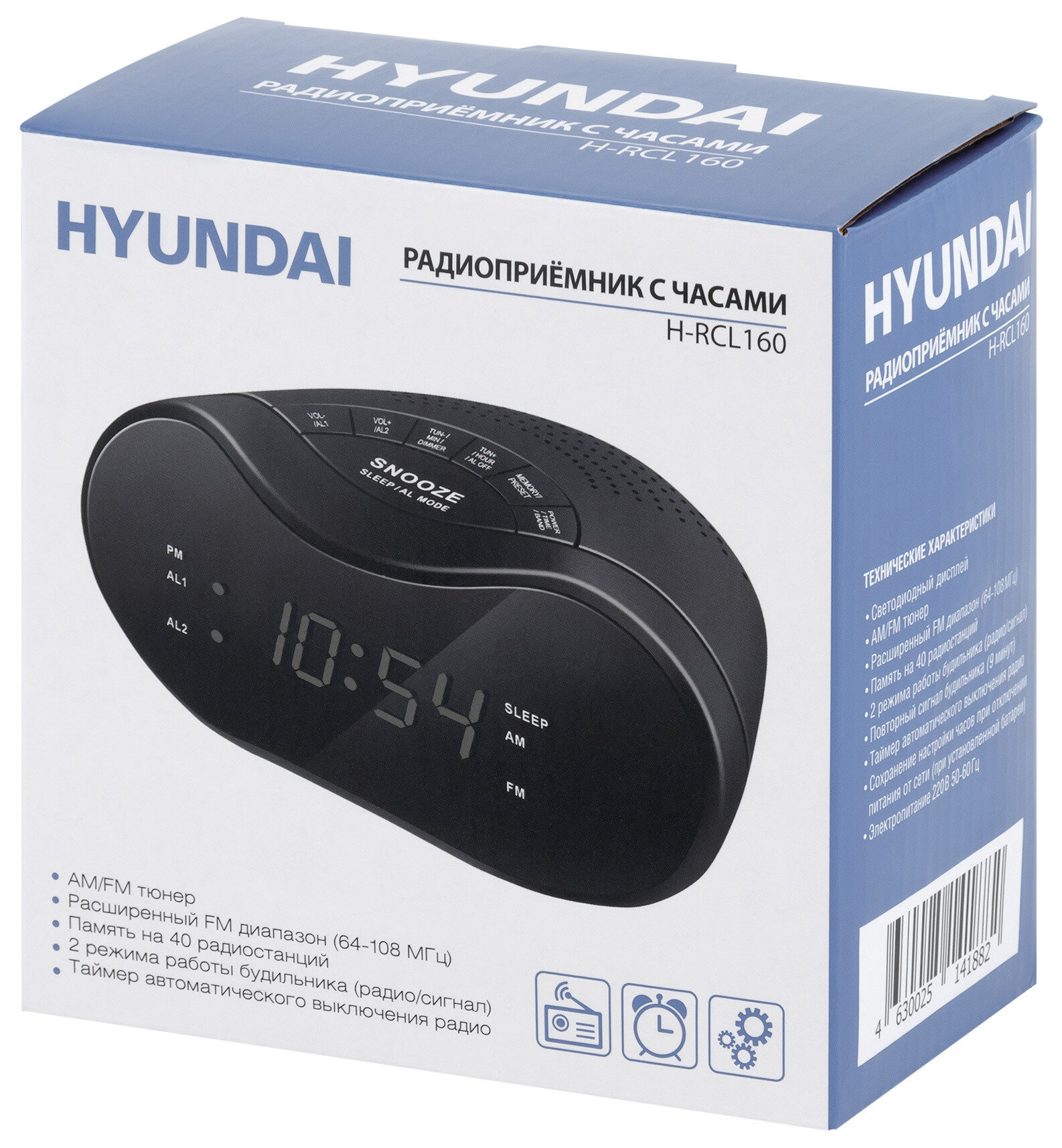 Радиобудильник Hyundai черный LED подсв:красная часы:цифровые AM/FM H-RCL160