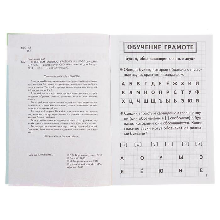 Проверяем готовность ребенка к школе. Для детей 6-7 лет. Тетрадь 1 (Бортникова Елена Федоровна); Литур, 2009