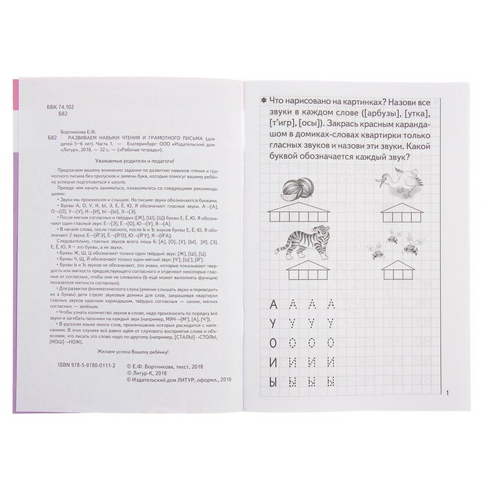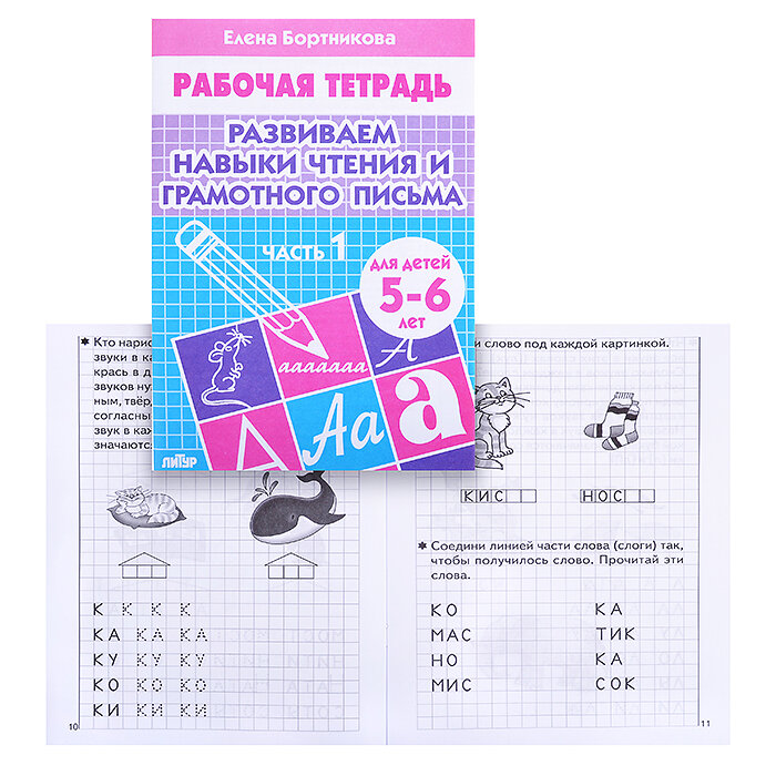 Рабочая тетрадь. Развиваем навыки чтения и грамотного письма для 5-6 лет. Часть 1. (Бортникова Елена Федоровна); Литур, 2008