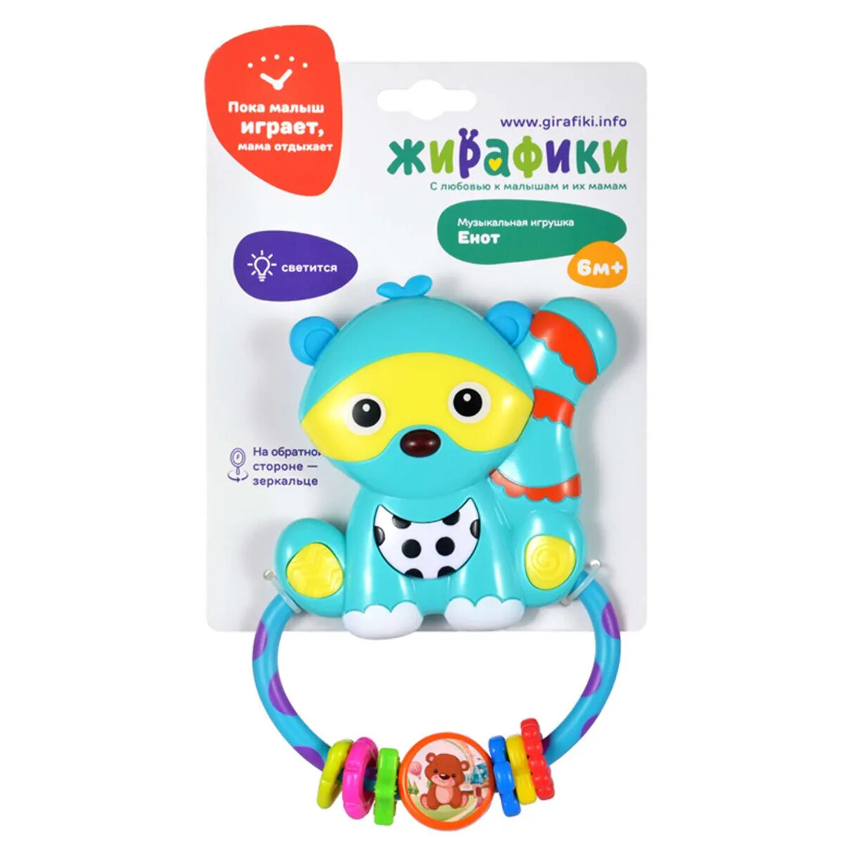 На сегодняшний день товар «Игрушка Жирафики музыкальная Енот с зеркальцем и светом (939551)» можно купить с кешбеком в 1 магазине: Яндекс.Маркет