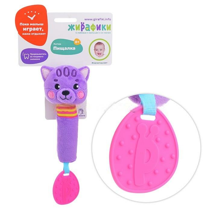 Сервис сравнения цен СкидкаГИД предлагает сравнить цены на товар «Пищалка Жирафики с силиконовым прорезывателем Котик (939516)»