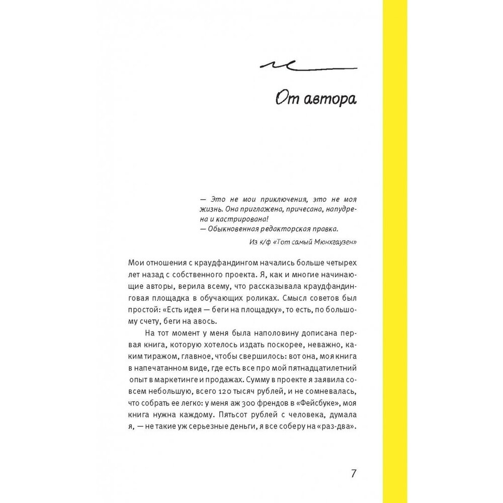 Книга конкретная. Мне, как новичку в данной теме импонирует то, что автор не обещает золотых гор за короткий срок, а подходит к теме развития своего краудфандинг-проекта основательно, периодически напоминая о том, что успех во многом зависит от качества проработки подготовительного этапа. Единственный минус – при чтении данной книги на Pocket book touch 2, картинки просматриваются нечетко. Из-за этого приходится открывать их на ПК.
