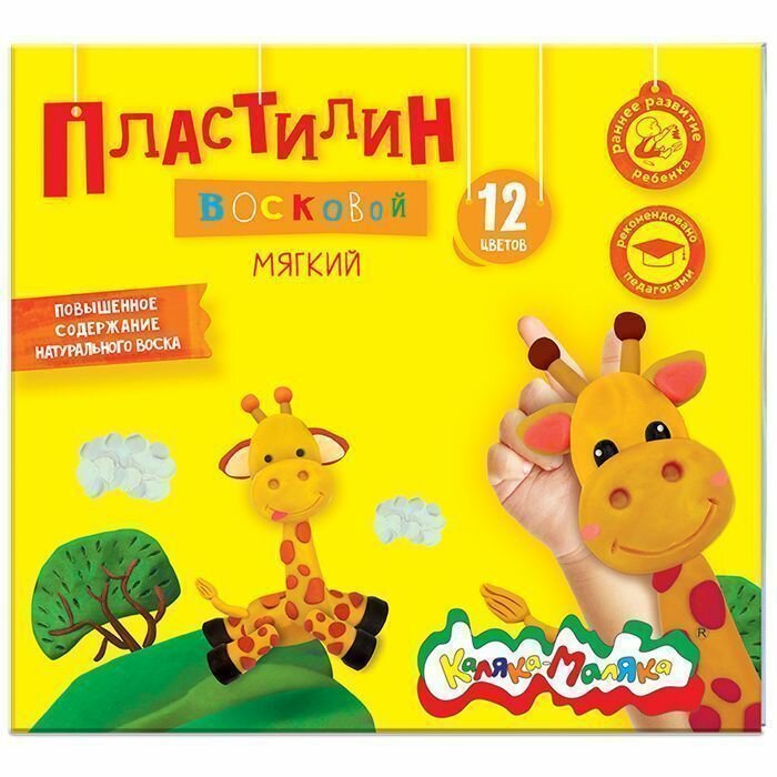 Восковой пластилин создан специально для малышей. Благодаря высокому содержанию воска он очень мягкий, пластичный и легко разминается в неокрепших детских ручках. Восковой пластилин предназначен для самых первых творческих занятий. Работать с ним — одно удовольствие: он не прилипает к рукам, не красится и не оставляет масляных пятен. Идеально подходит как для фигурной лепки, так и создания пластилиновых картин. Имеет яркие чистые цвета, максимально приближенные к природным. Абсолютно безвреден для кожи ребенка.