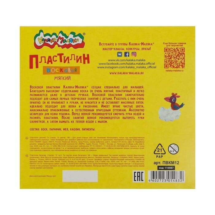 Сервис сравнения цен СкидкаГИД предлагает сравнить цены на товар «Пластилин восковой Каляка-Маляка ПВКМ12»