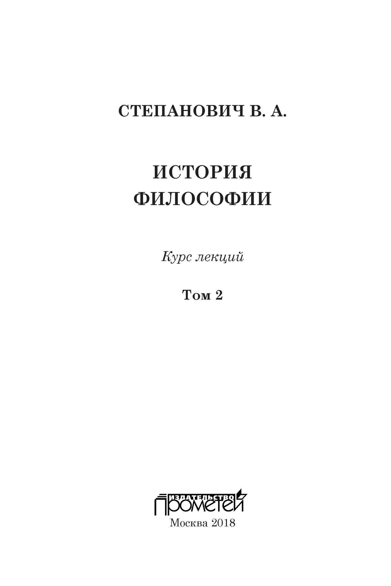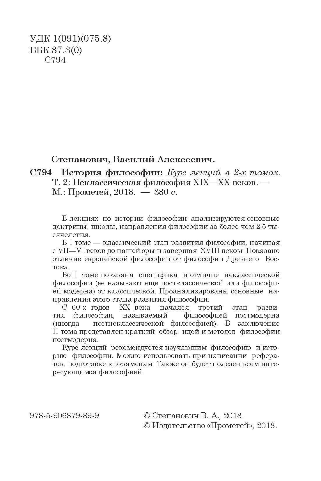 История философии. Курс лекций в 2-х томах. Том 2. Исторические типы неклассическая философия (Василий Степанович); Прометей, 2018