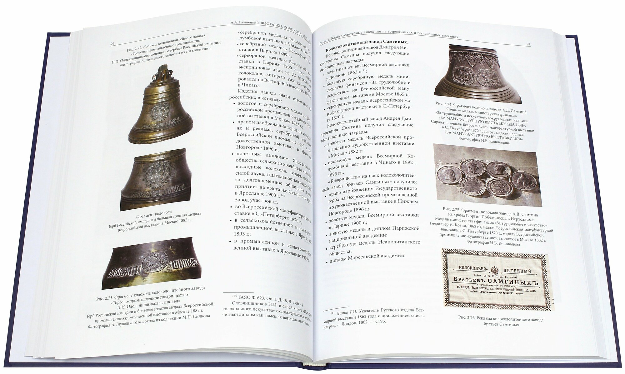 Приведен обширный иллюстративный материал: рекламы колокольных заводов с изображением выставочных наград, фотографии колоколов и колокольчики с отлитыми на них выставочными наградами. Открыты "тайны" некоторых выставочных медалей, преодолен ряд устоявшихся заблуждений.