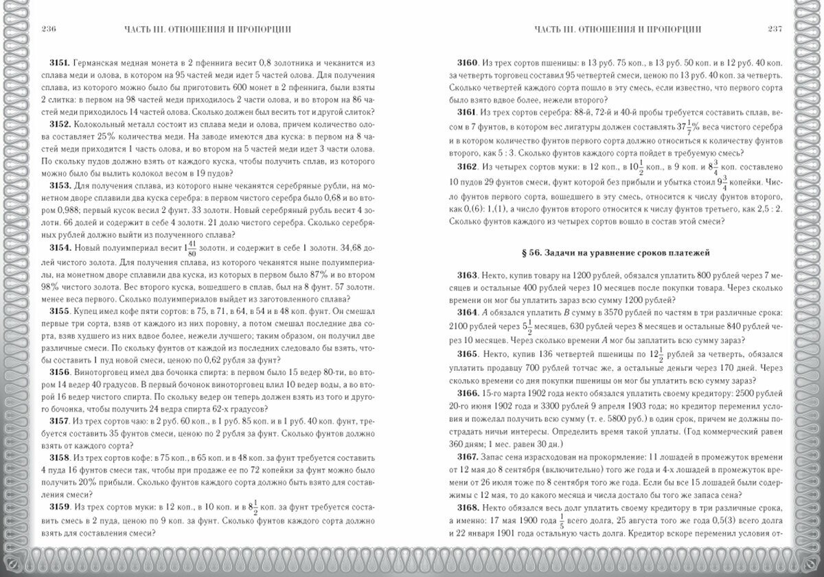 В книге представлен дореволюционный подход к преподаванию математики. То, что в 19-ом и начале 20-го века было доступно не многим, благодаря этому изданию теперь доступно всем. Но уровень задач существенно превосходит стандартные советский и российский учебники.