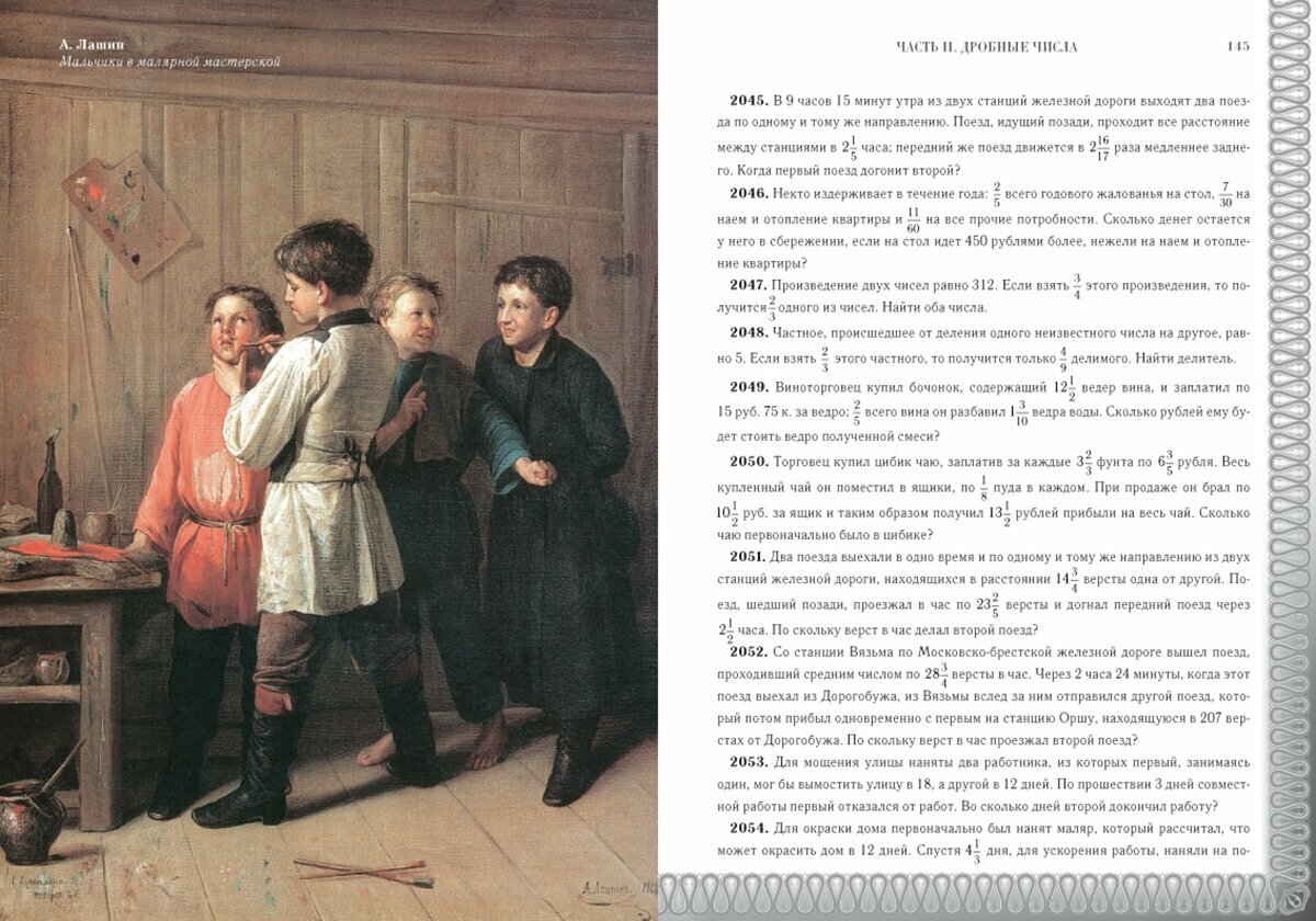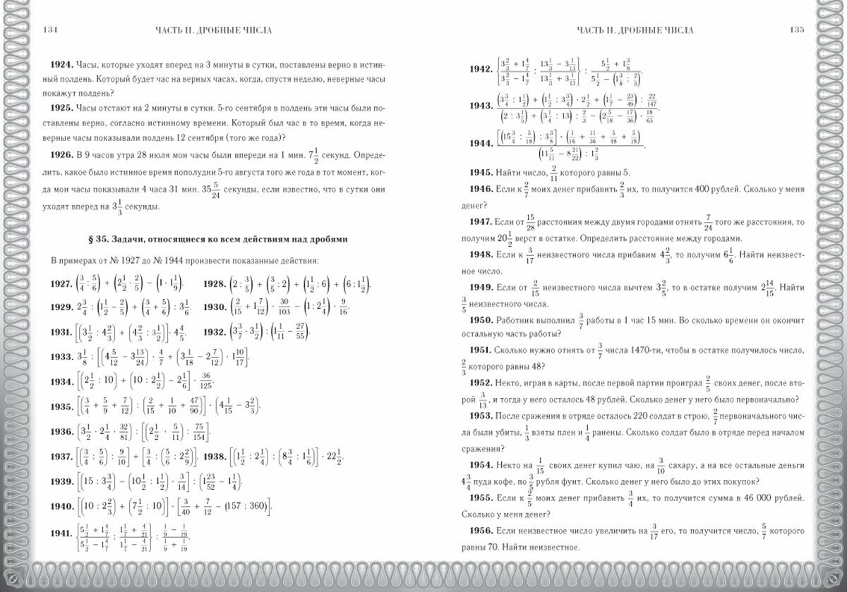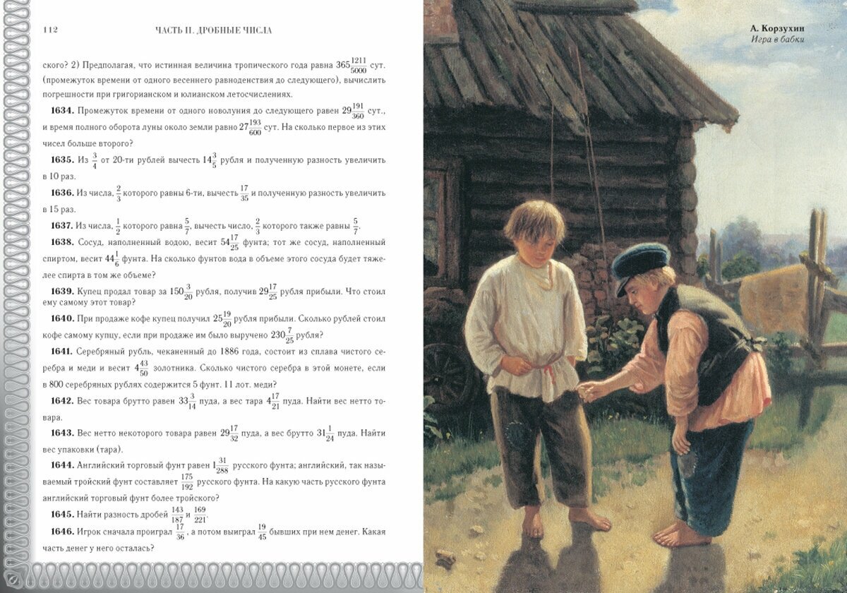 И, конечно, само содержание. Сначала раздел о целых числах и действиях с ними, затем простые и десятичные дроби, а после - пропорции. Если решить хотя бы треть из всех этих задач, в 10-11 классах не будет вопросов по дробям. Ребята, решая их, окунутся в атмосферу 19 века, смогут прочувствовать его и, может, немного понять, как жили люди раньше. -