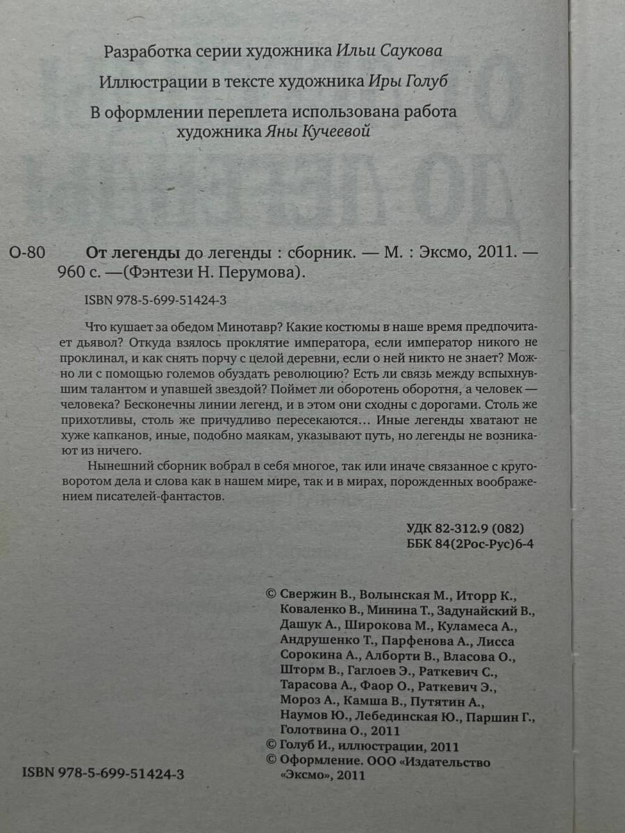 Что кушает за обедом минотавр? Какие костюмы в наше время предпочитает дьявол? Откуда взялось проклятие императора, если император никого не проклинал, и как снять порчу с целой деревни, если о ней никто не знает? Можно ли с помощью големов обуздать революцию? Есть ли связь между вспыхнувшим талантом и упавшей звездой? Поймет ли оборотень оборотня, а человек – человека? Бесконечны линии легенд, и в этом они сходны с дорогами. Столь же прихотливы, столь же причудливо пересекаются... Иные легенды хватают не хуже капканов, иные, подобно маякам, указывает путь, но легенды не возникают из ничего. Нынешний сборник вобрал в себя многое, так или иначе связанное с круговоротом дела и слова как в нашем мире, так и в мирах, порожденных воображением писателей-фантастов.