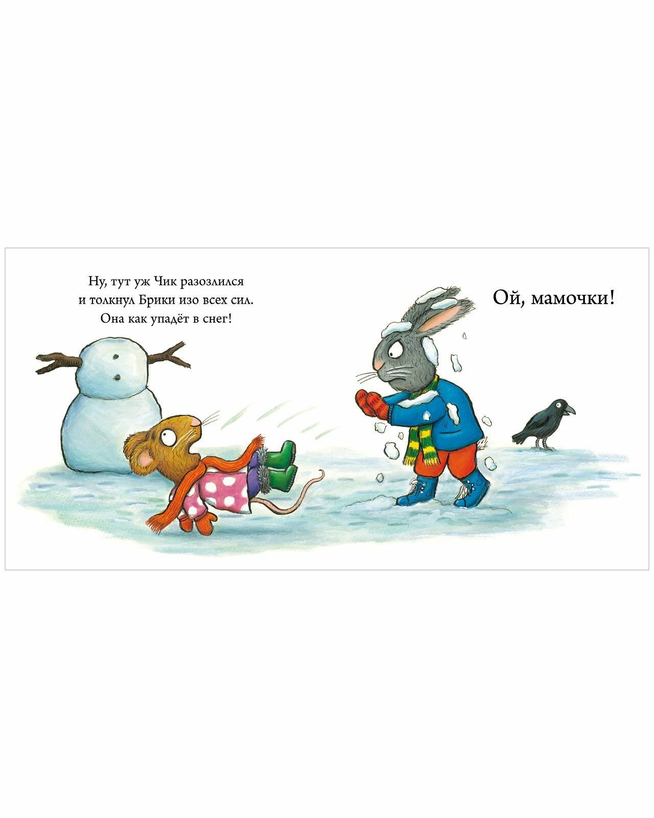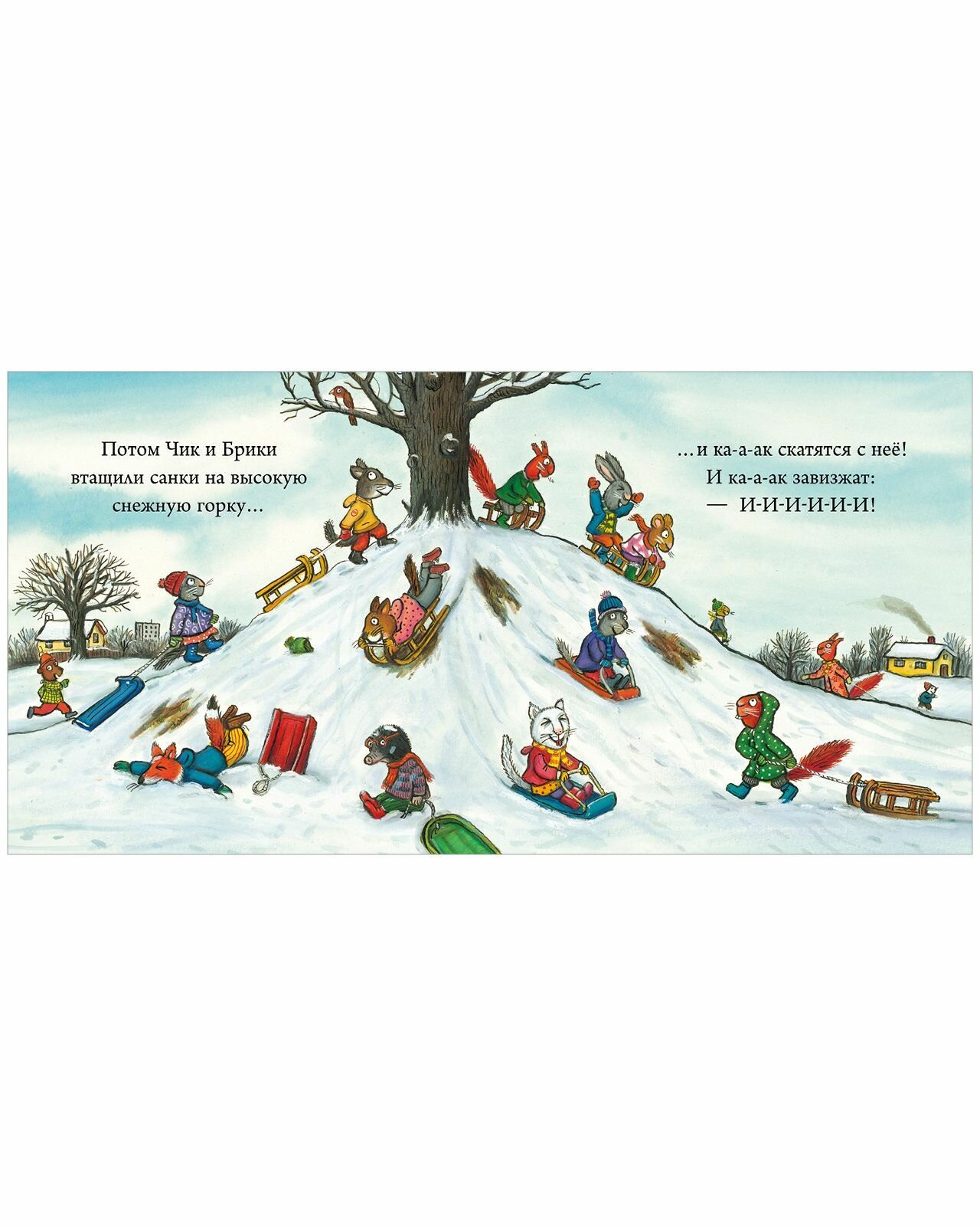 Ну и как можно пройти мимо такой замечательной новинки от Акселя Шеффлера? Не раздумывая приобрела для дочки. Тем более, что история как раз зимняя! Прекрасное качество издания. Твердая обложка. Яркие красочные добрые милые иллюстрации на всю страницу. Крупный текст. Читать историю о том, как Чик и Брики проводят зимний день - одно удовольствие! Идеальная книга для чтения после прогулок зимними вечерами под пледом. Буду приобретать всю серию! Прикрепляю все страницы