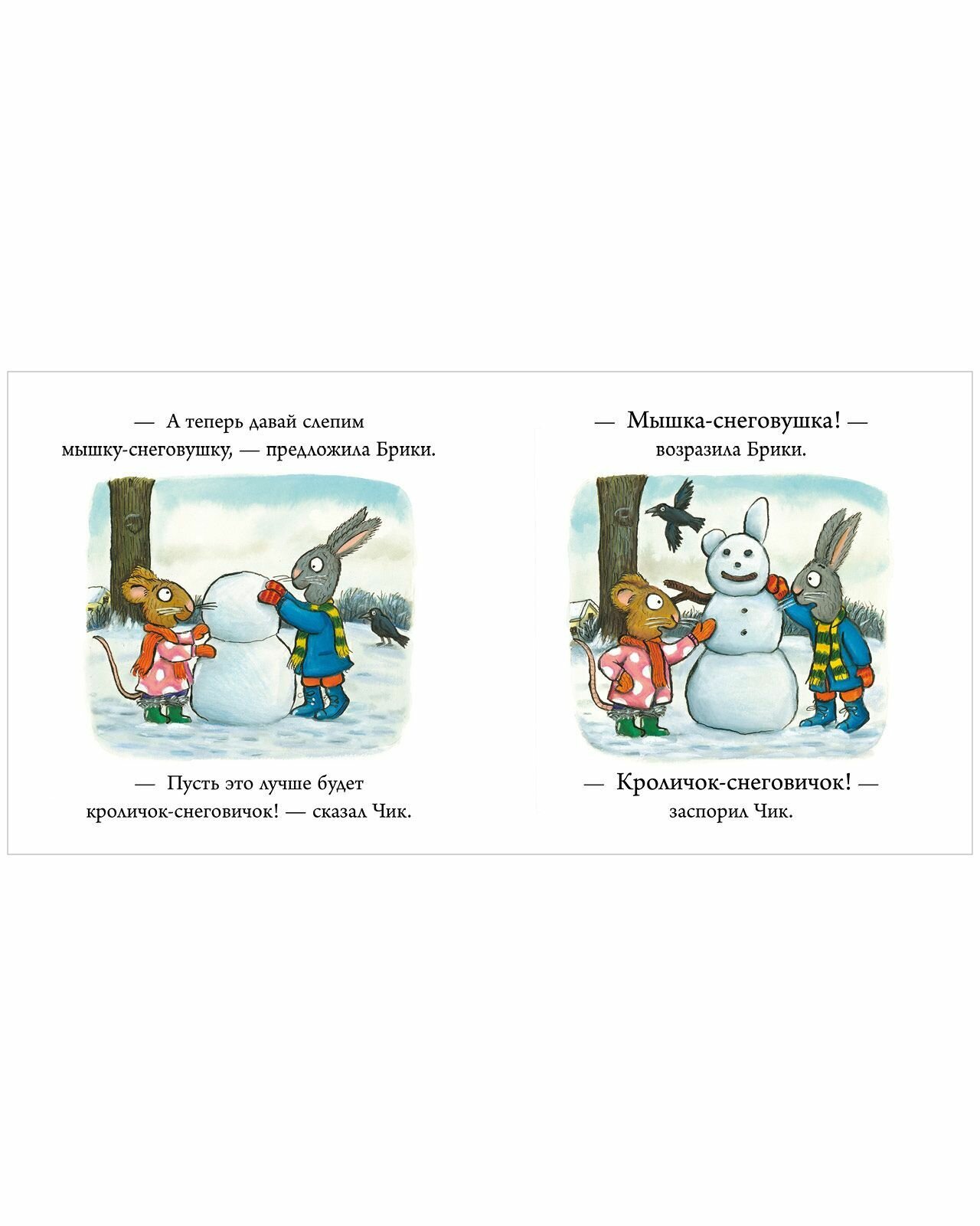 Как здорово лепить вместе снеговика! Вот только Чик и Брики никак не могут договориться, кто это будет - зайчик или мышка…