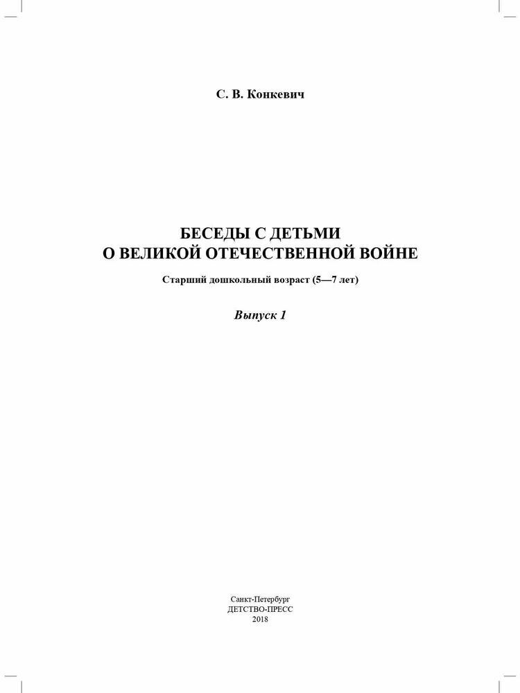 Беседы с детьми о Великой Отечественной войне. Старший дошкольный возраст 5-7 лет. Выпуск 1. (Конкевич Светлана Васильевна); Детство-Пресс, 2021