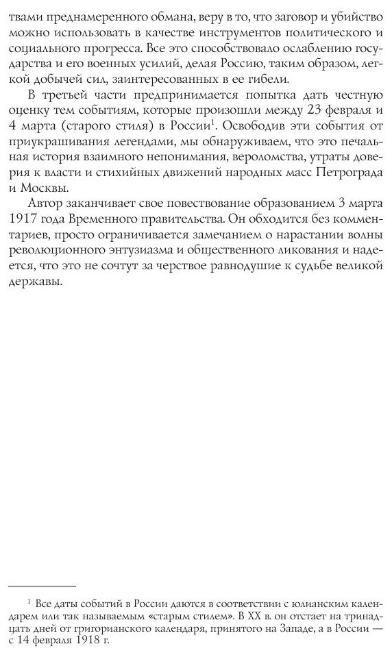 впечатляющий подъем народной активности в масштабах всей страны был следствием, но отнюдь не причиной фундаментальных перемен в судьбе России, которые происходили в те дни. Всеобщий кризис в стране разразился во временном промежутке между событиями в Петрограде и действиями Ставки. Это привело к абсурдной ситуации 27 февраля, когда царь продолжал отсылать распоряжения уже несуществующему правительству в Петрограде, и повторению ее 2 марта, когда генералы в разных штабах продолжали вести переговоры с председателем Думы, словно он еще контролировал обстановку, в то время как на самом деле уже нет".