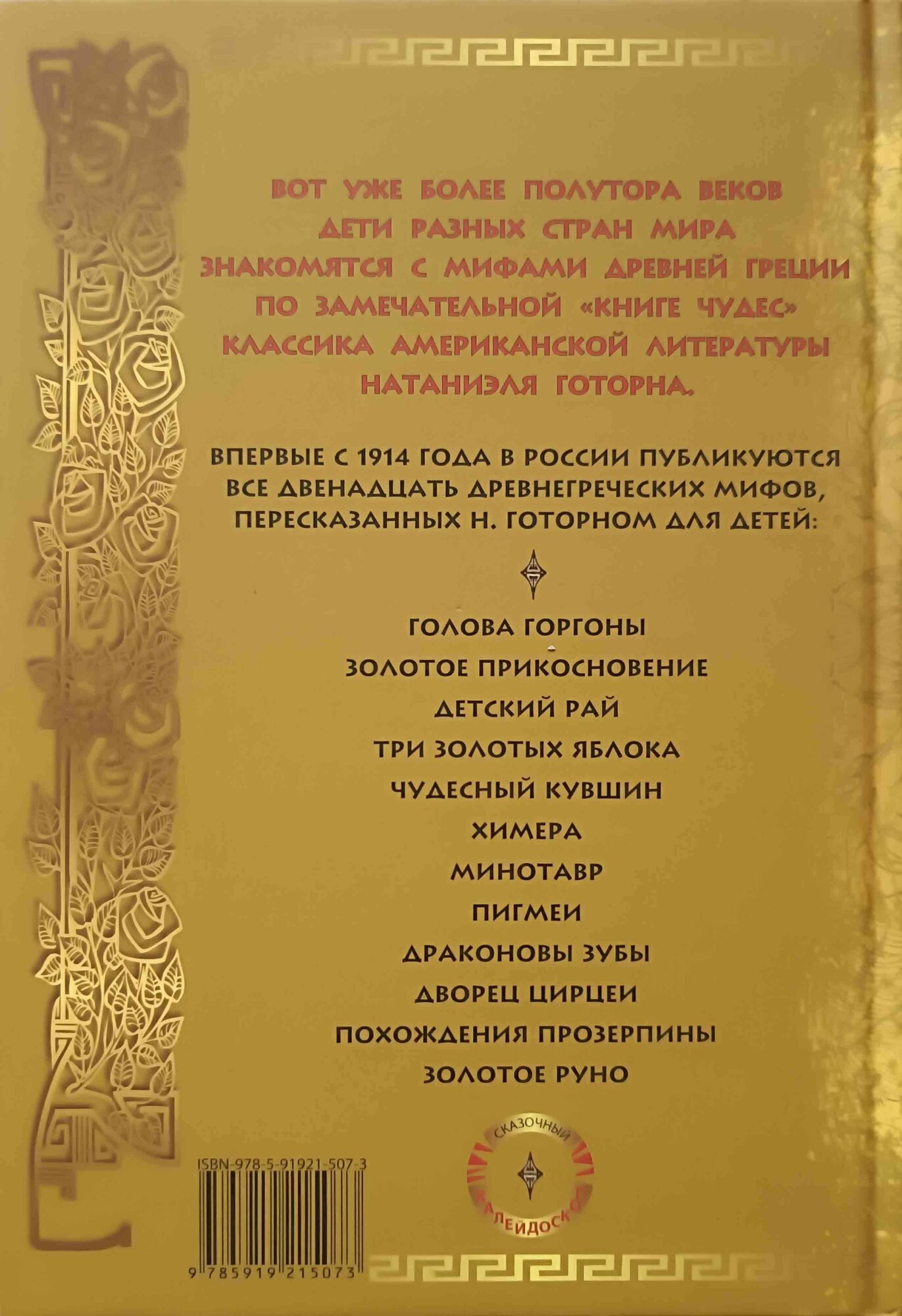 В книге классика американской литературы Натаниэля Готорна юный читатель найдет вольный, талантливый, увлекательный и веселый пересказ наиболее известных древнегреческих мифов. Приключения Персея, Геракла, Тезея, Одиссея, Язона и других античных героев описаны автором живо, красочно и удивительно современно. Впервые с 1914 года в России публикуются все двенадцать древнегреческих мифов, пересказанных Н. Готорном для детей. Черно-белые иллюстрации.