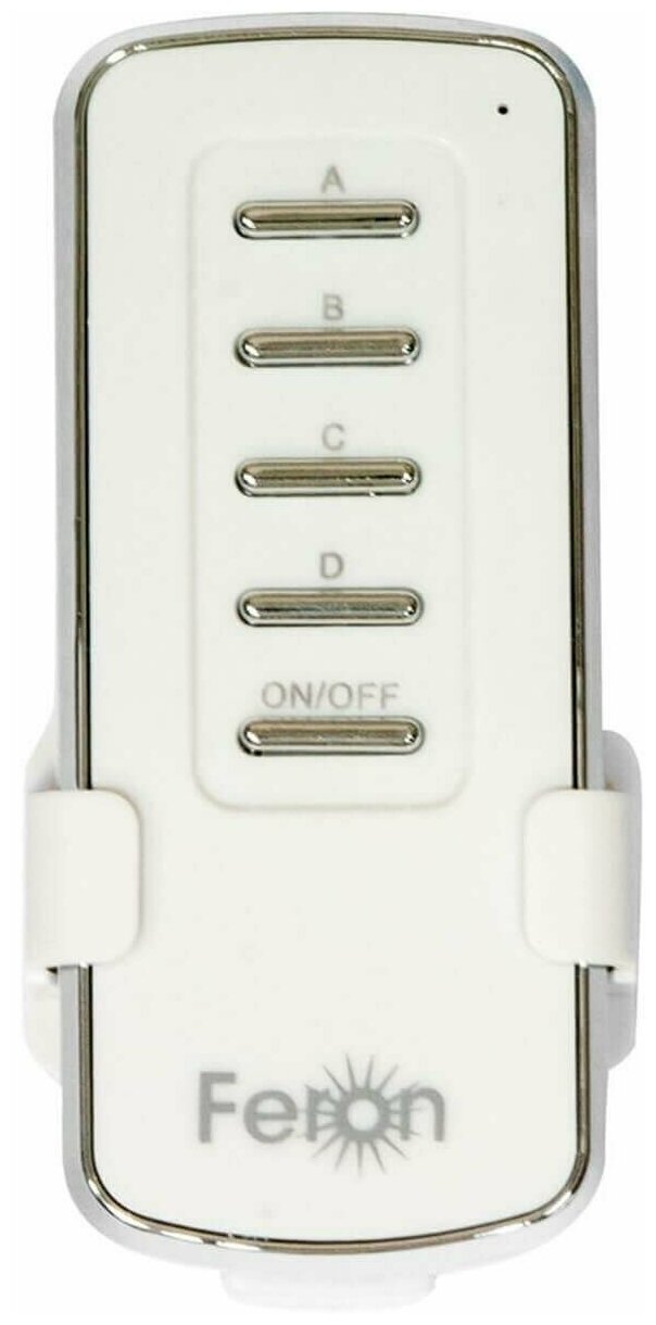 Пульт ДУ от производителя Feron (Китай). Цвет товара белый. Используемые материалы: пластик. Напряжение 220-240 Вольт. Уровень защищенности от влаги и пыли IP20. Расширенная гарантия на товар 2 года. Длина 100 мм. Ширина 55 мм. Высота 25 мм. Вес товара 0.18 кг. Комплектация: Пульт ДУ. Инструкция по сборке/использованию. Детали, необходимые для сборки товара.Товар упакован в картонную коробку. В случае доставки транспортными службами или маркетплейсом добавляются дополнительные элементы упаковки для защиты от повреждений при транспортировке - усиление картоном, внутренний наполнитель, стрейч-пленка.