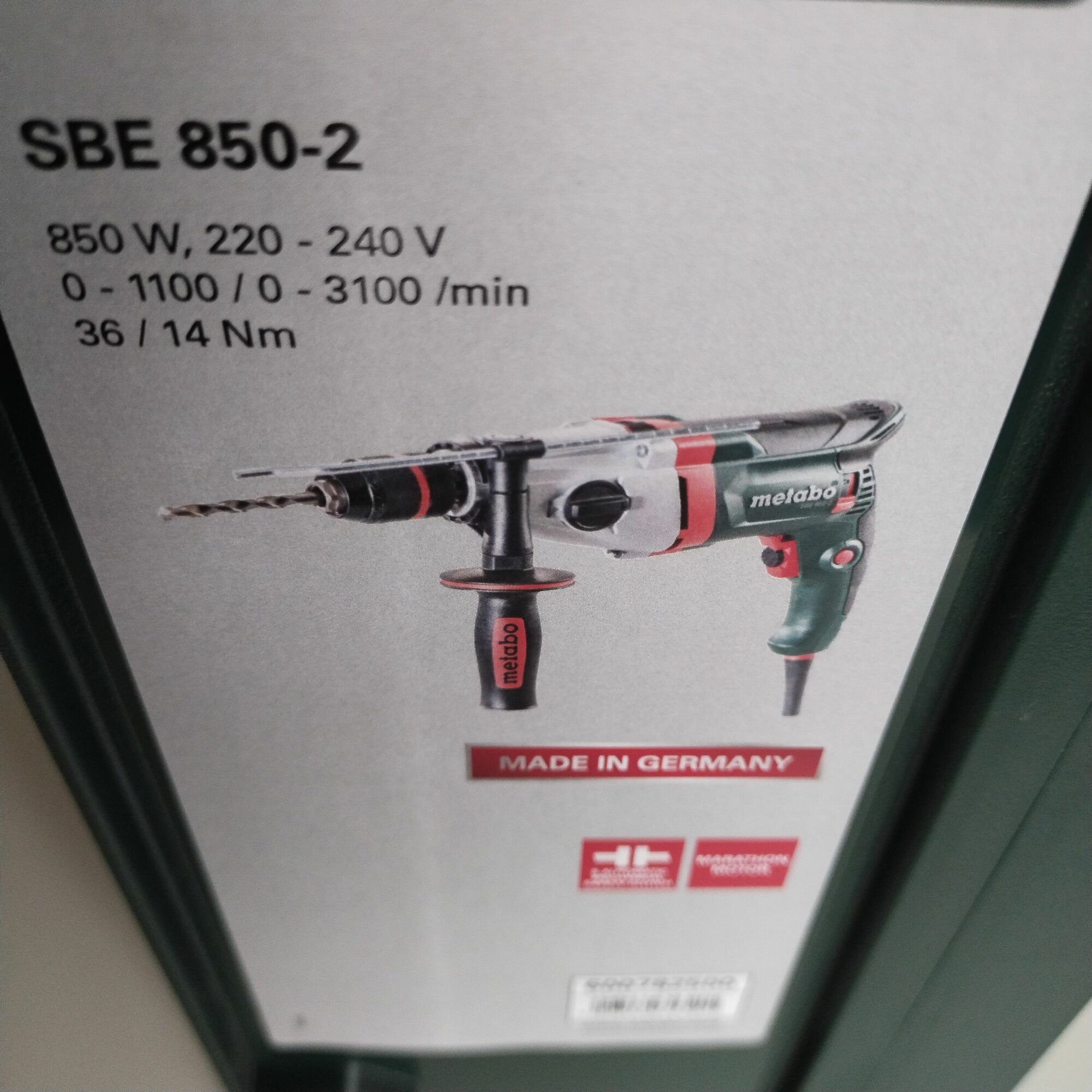 Ударная дрель Metabo SBE 850 мощна и имеет два режима скорости, так что позволяет пользователю заниматься шуруповертными работами и сверлением отверстий во множестве материалов. Имеет поворотный щеточный механизм, позволяющий не терять крутящий момент при обратном вращении насадки, и позволяет удобно производить установку насадок благодаря быстрозажимному патрону и шпинделю с прямой установкой бит.