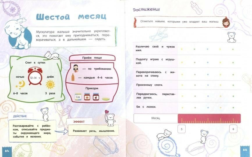 Отличный подарок для будущих родителей и их малыша. Много полезной и интересной информации. Подробно расписан каждый месяц: что ребенок должен уметь, а чему еще должен научиться. Хорошие рекомендации по питанию, режиму дня, играм. Имеются спец.окошечки для записей и фото. Очень яркая и полезная книга, которая останется на память на всю жизнь))) Рекомендую!
