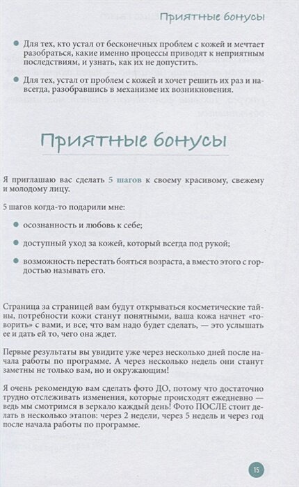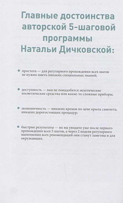 Сплошное разочарование.Ничем не отличается от других подобных.Информация для девочек 13-15 лет. Те ,кто постарше, вряд ли найдут что-то новое.109 страниц,из них 5это отзывы,10страниц рассуждение кому нужна эта книга и обещания чудес,2страницы посвящены реальному отзыву .Оставшийся объем очень сильно растянут, например анатомия лица-кости,мышцы,подкожно-жировая клетчатка,кожа-эта информация занимает 2страницы.Остальное тоже очень растянуто и сдобрено картинками. Прям как в школе,когда пишут сочинение ,а сказать нечего,то и почерк крупнее и расстояние между строчками больше. Эту книгу реально прочитать в книжном магазине,настолько мало информации.Да и качество и формации,на мой взгляд,на уровне женских журналов(
