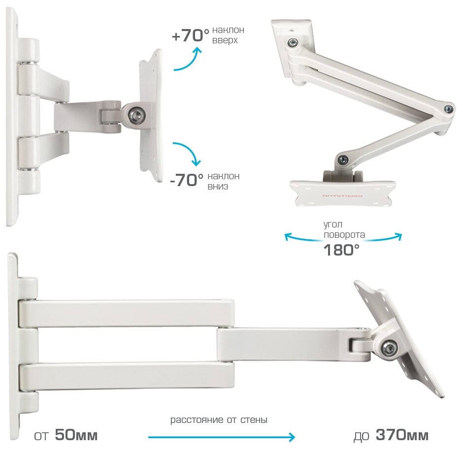 | Виды регулировок | наклон (±70°), поворот (180°) |