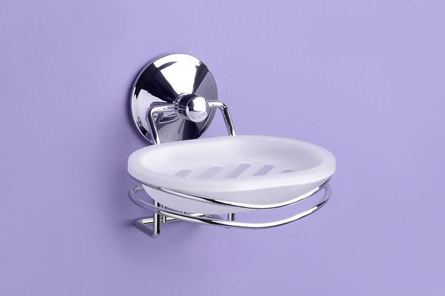 Мыльница настенная серии Real надежно крепится к любой гладкой поверхности при помощи инновационной вакуумной системы. Установка не требует сверления стен.