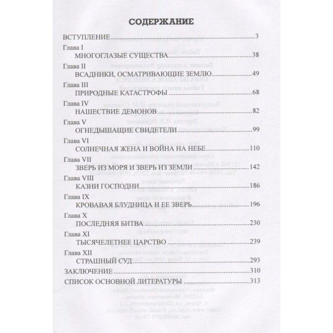 В очередной книге серии автор пытается понять, как менялось со временем отношение к образам Откровения и утратили ли они свою актуальность сегодня. Видения многоглазых существ, всадников, осматривающих землю, выходцев из бездны, огнедышащих свидетелей, чудовищных зверей, кровавой блудницы за прошедшие века приобрели множество исторических и символических трактовок. Загадки последней битвы, тысячелетнего царства и Страшного Суда остались неразрешенными, несмотря на идеологические баталии и обличения ересей. Даже те, кто предпочитал буквальное, догматическое или научное толкование, не избежали личных предпочтений. Могло ли быть иначе? На этот вопрос отвечает книга Александра Волкова.
