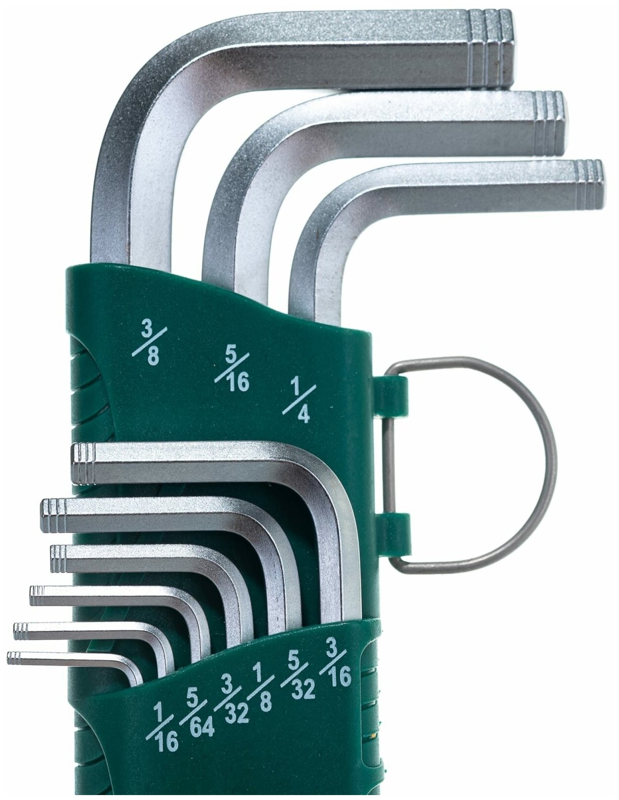 - 9 торцевых шестигранных ключей с шаром: 1/16", 5/64'', 3/32'', 1/8'', 5/32'', 3/16'', 1/4'', 5/16'', 3/8";