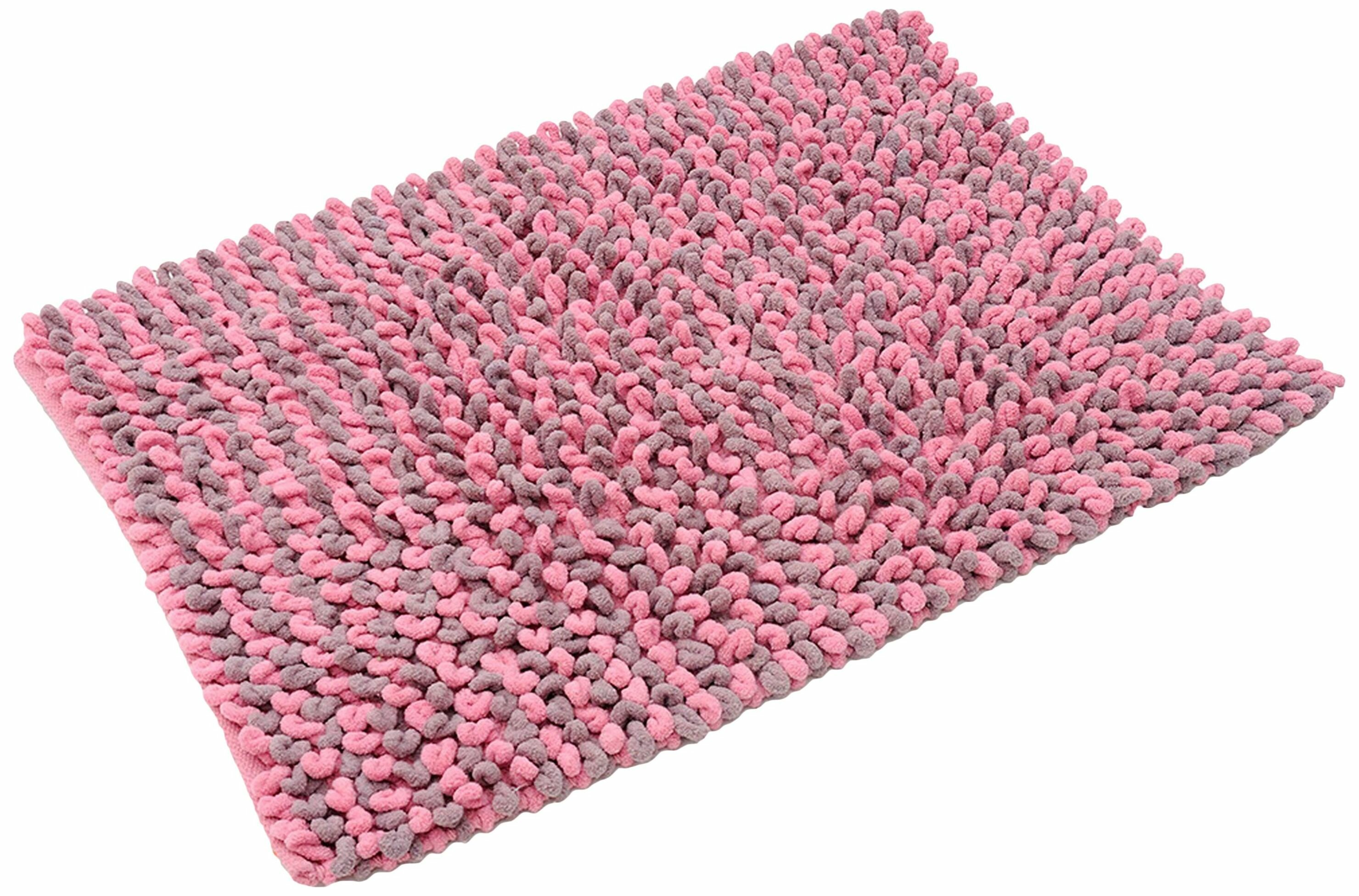 Яркие петли розового и лилового цветов задают ритм и увлекают взгляд в игру. Благодаря латексному напылению коврик не скользит на напольных покрытиях и защищает от падения. Длина ворса 4 см.