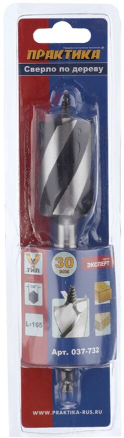Сверло по дереву ПРАКТИКА 037-732 30x165мм 3-х заходное по дереву