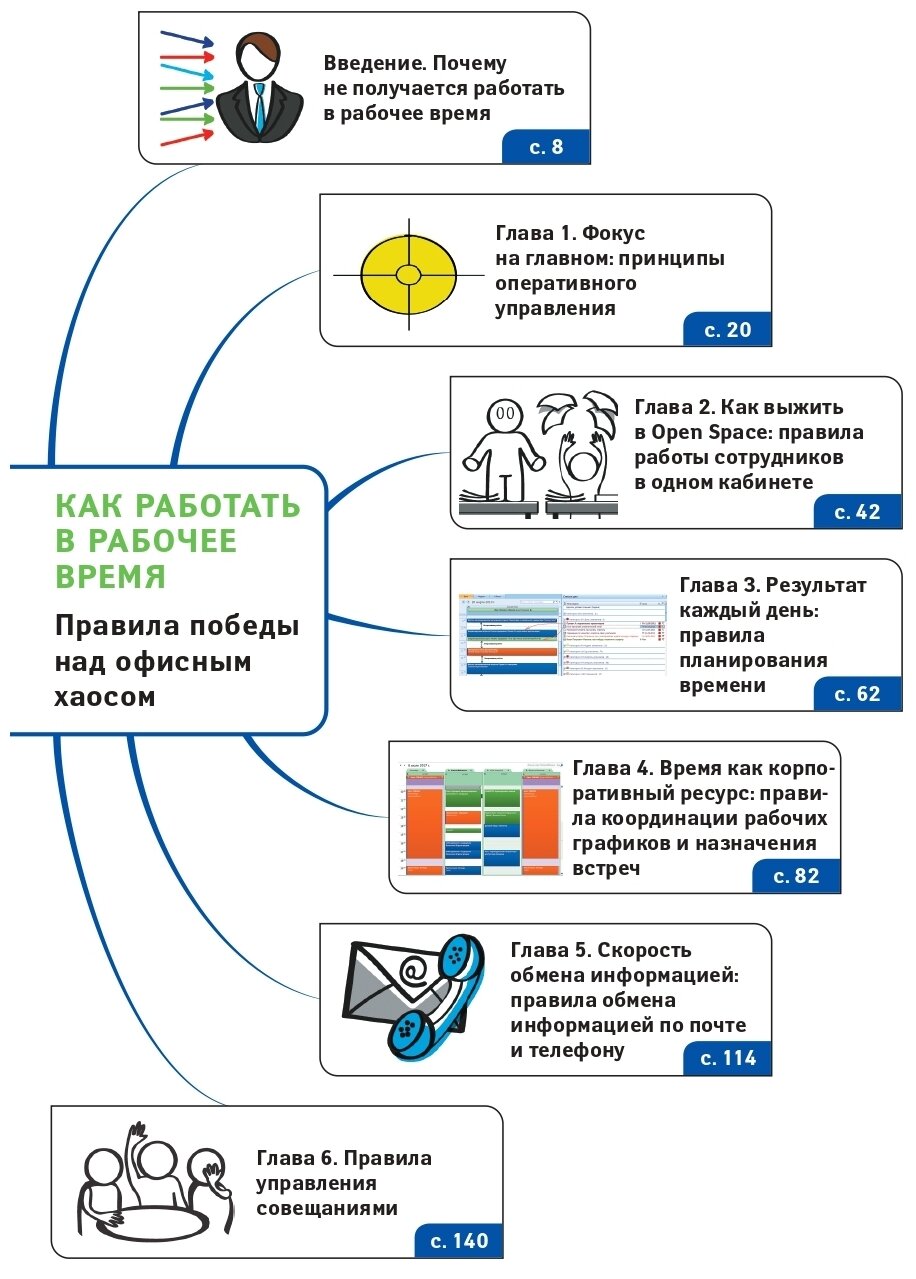 Как часто бывает, что по-настоящему эффективно работать получается только в нерабочее время — рано утром, вечером или по выходным? Практика показывает, что примерно половина рабочего времени в офисе используется неэффективно из-за царящего там хаоса, и приходится работать дольше, чтобы выполнить хотя бы часть плана. Сергей Бехтерев использовал свой многолетний опыт консультирования крупнейших компаний, чтобы собрать лучшие практики борьбы с офисным хаосом. С помощью приведенных в этой книге правил и рекомендаций вы существенно повысите эффективность своей работы и сможете посвятить освободившееся время самому важному: семье, здоровью, спорту, образованию, друзьям и другим целям, на которые вас не хватало раньше.