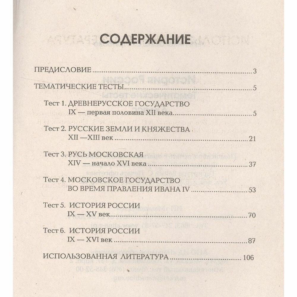 История России. Тематические тесты. 6 класс (Николаева Л. И., Грибова Е. Н.); Народное образование. НИИ Школьных технологий, 2015