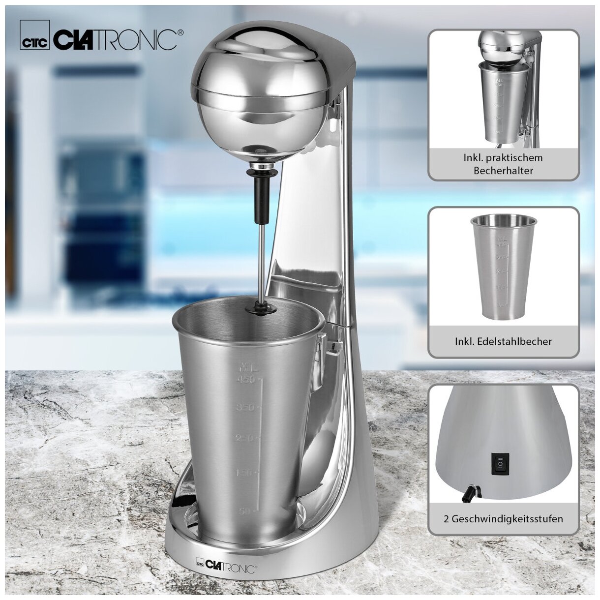 Миксер компактный, полностью изготовлен из металла, однозначно надежный , смотрится эстетично.Благодаря высокой скорости вращения мгновенно можно приготовить взбитые до совершенства, поэтому очень вкусные молочные, молочно-фруктовые, а для гостей фантазийные напитки.