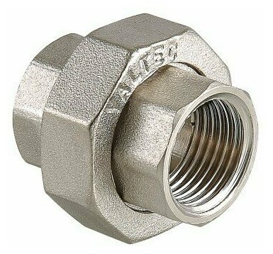 Латунная никелированная разъемная муфта. Резьба – внутренняя/внутренняя, цилиндрическая трубная по госту 6357 (ISO 228, EN 10226), совместима также с наружной конической трубной резьбой по госту 6211 (ISO R7). Соединение частей муфты осуществляется с помощью накидной гайки. Уплотнительное кольцо выполнено из синтетического каучука EPDM. Гайку следует накручивать с приложением момента не более 30 нм.Внимание, фото может отличаться.