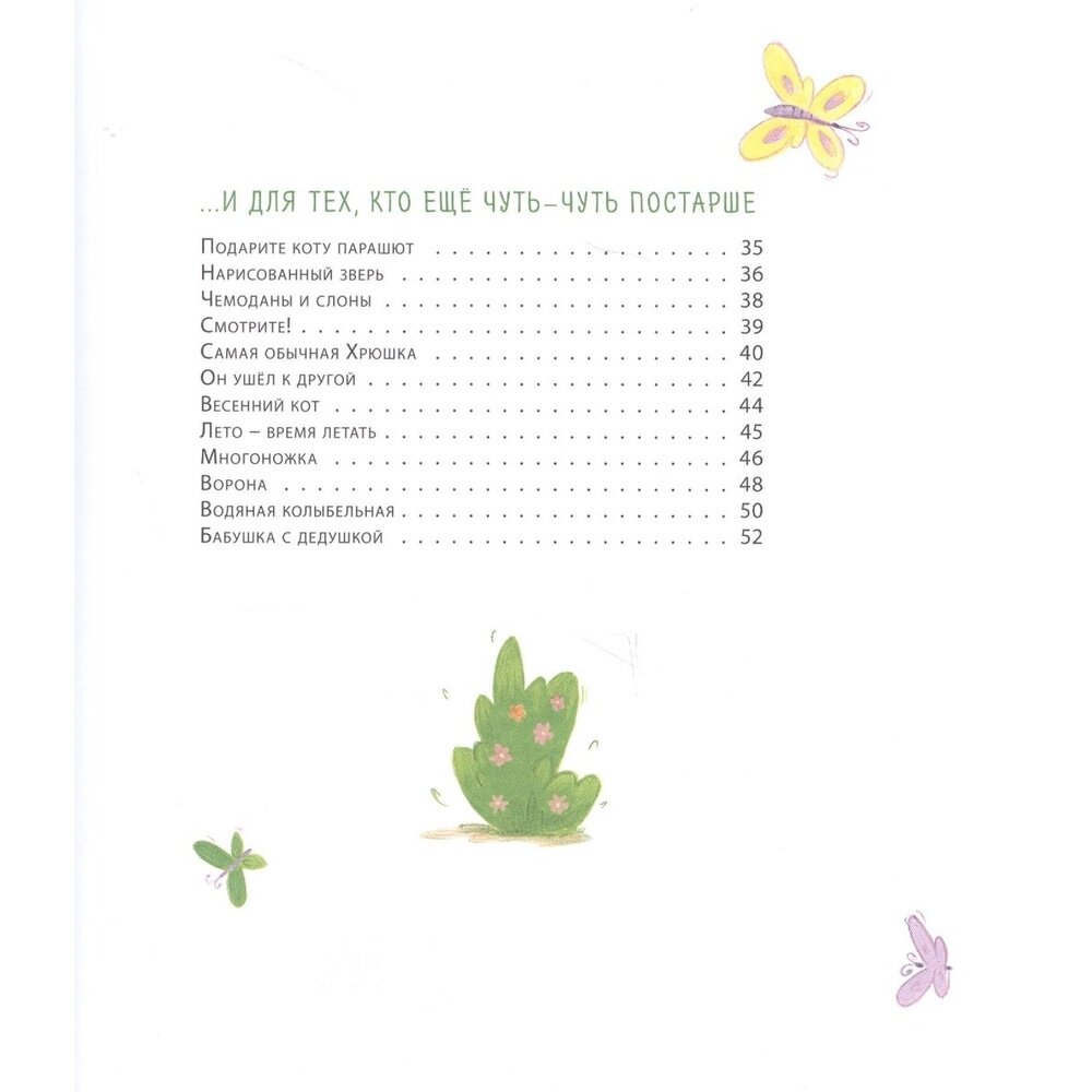Книга "Лето без берета" - замечательная. От нее остается светлое и приятное ощущение. Стихи добрые, хорошие. Двое детей - 4 и 2 года - слушают стишки с удовольствием. Старшей дочери очень понравился раздел с рифмованными загадками. В книге есть деление на "стихи для маленьких, для тех, кто постарше, и для тех, кто еще чуть-чуть постарше"-соответственно и объем стихов увеличивается - от четверостиший, до стихов на две страницы. Очень приятное приобретение.