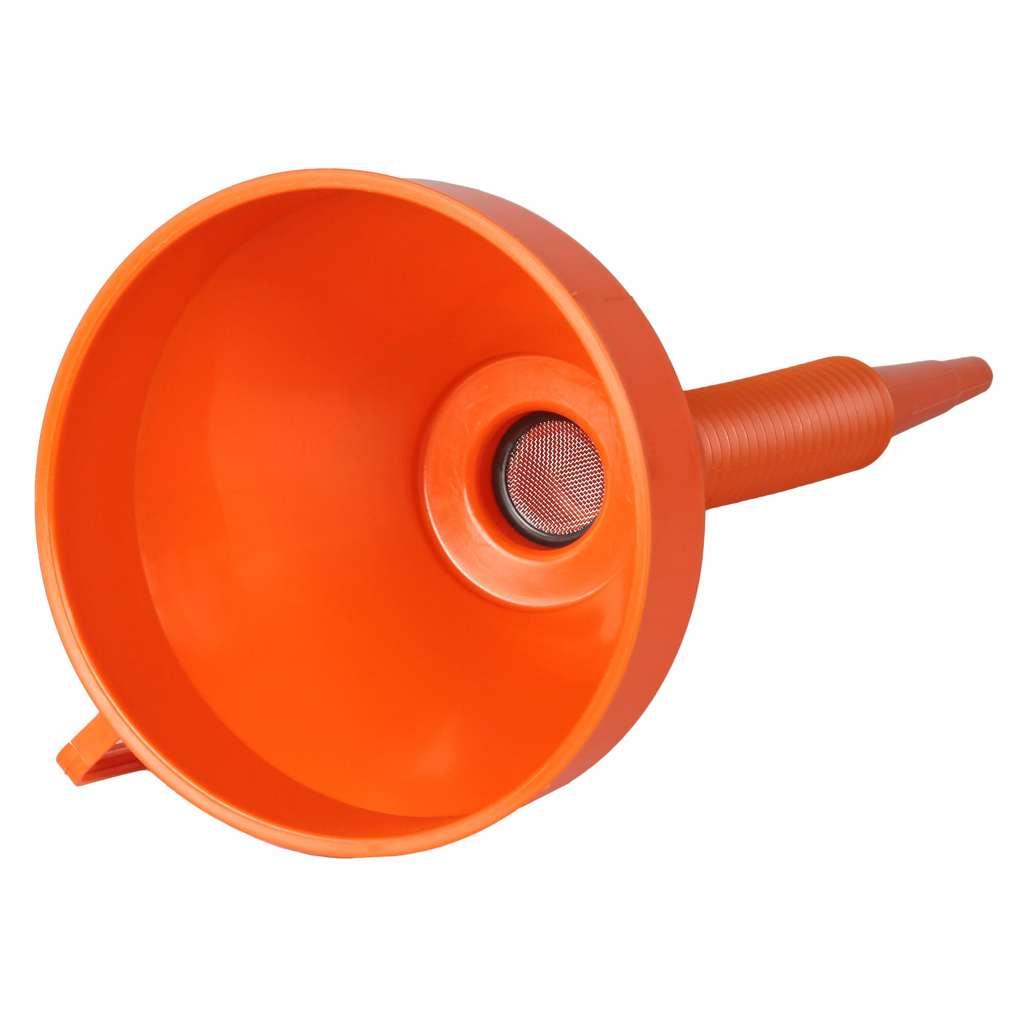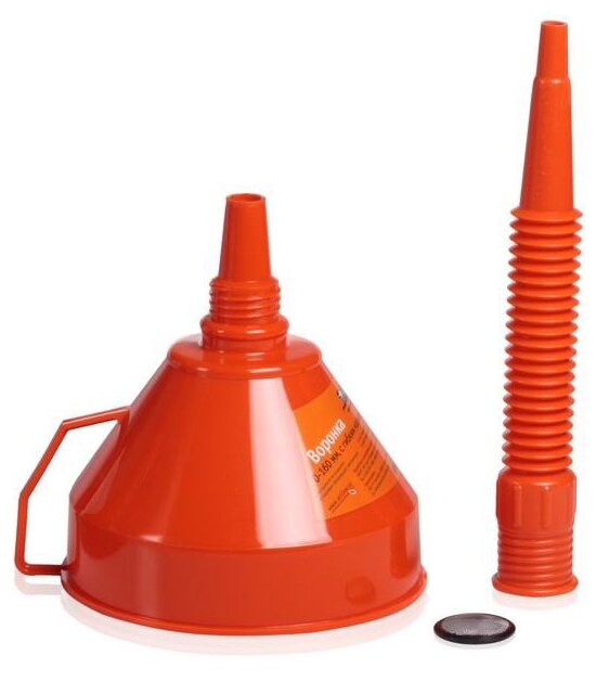 Воронка поможет аккуратно произвести процесс переливания жидкостей. Данная воронка имеет диаметр 160 мм. Благодаря гибкому носику воронки изделие можно расположить в любом удобном положении и под необходимым углом. Воронка укомплектована специально мелкоячеистой сеткой для фильтрации мусора при переливании.