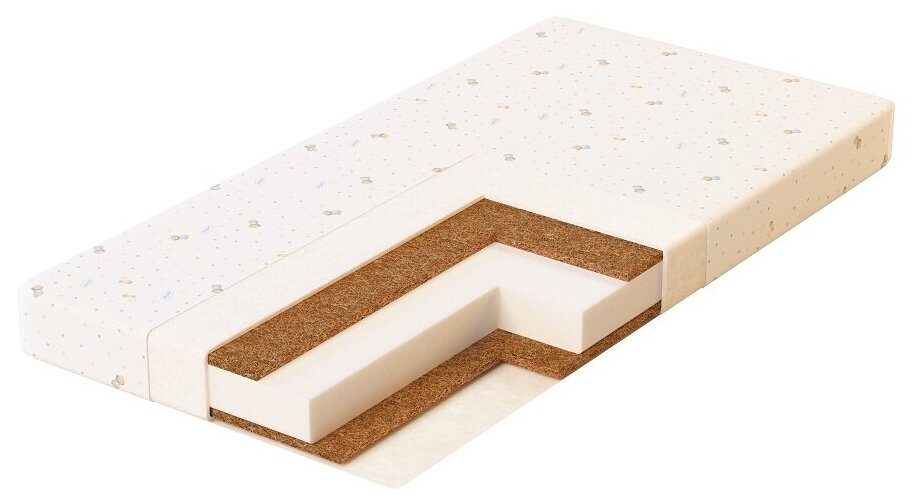 Недорогой ортопедический беспружинный матрас из экологически чистых материалов. Основа матраса – плита из гипоаллергенного, прекрасно сохраняющего форму материала - Hollcon Plus. В качестве настилочного материала с обеих сторон – кокосовая койра, придающая матрасу жесткость. Оба наполнителя – холлкон и латексированная кокосовая койра – совершенно не впитывают влагу и запахи, не вызывают аллергии, создают прекрасный микроклимат. Чехол выполнен из бязи (100% хлопок) с оригинальными детскими рисунками.
